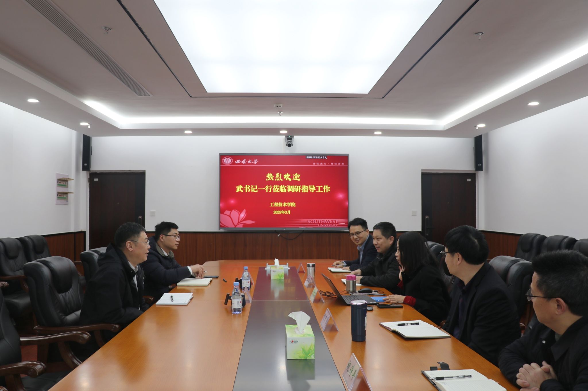 会议伊始,古文海书记代表公司对武书记一行的到来表示热烈欢迎,随后,她从历史沿革、团队队伍、专业建设、团队建设、科学研究、人才培养、社会服务等方面介绍了公司基本情况。谢守勇经理重点汇报了公司在丘陵山区智能农机装备研发、智慧农场建设等方面的情况及下一步的发展规划。陈富国副书记、周渠副经理和祝诗平副经理分别从员工思想政治教育、本科人才培养和科学研究等方面做了汇报。
