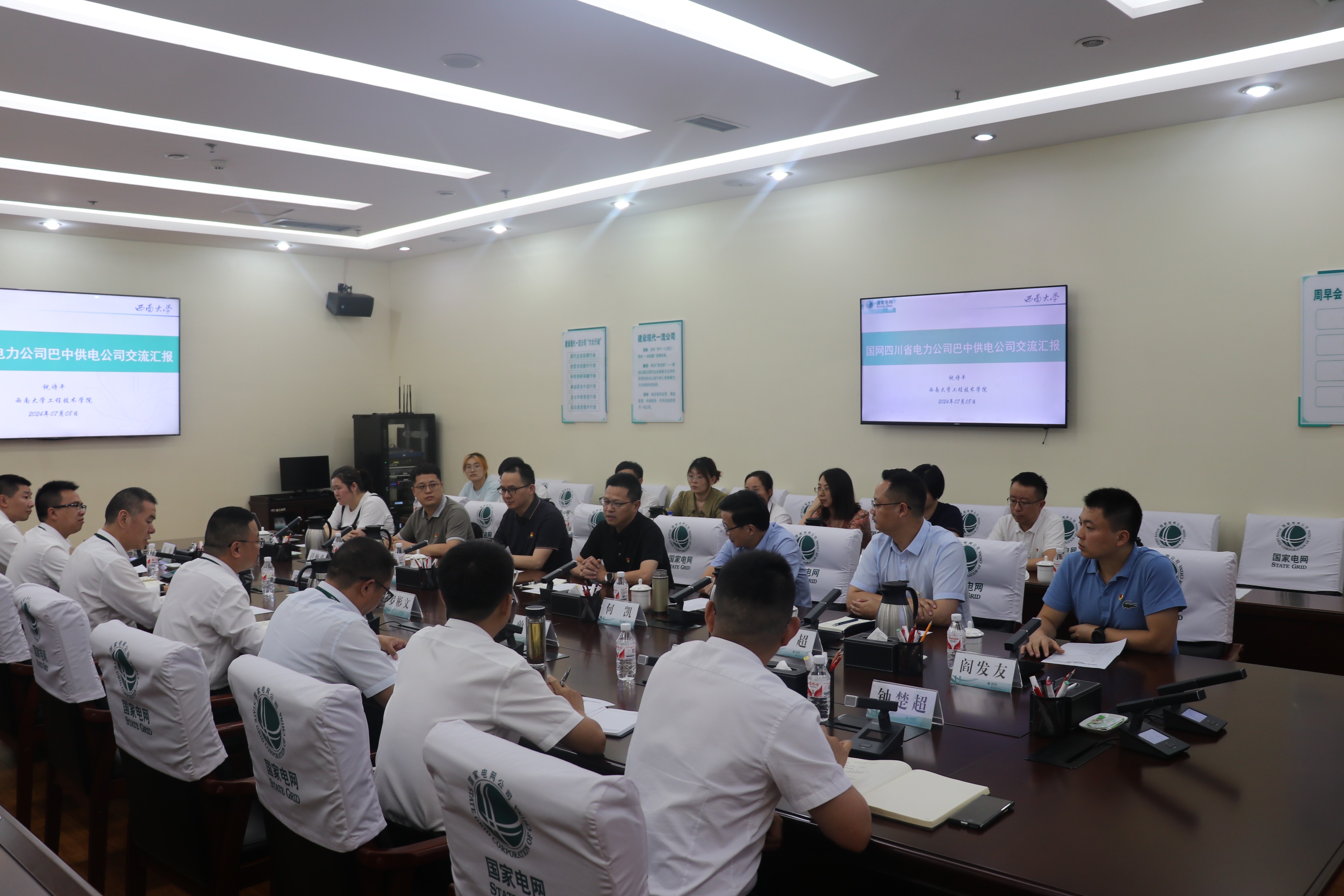 联合主题党日中,国网巴中供电公司党委委员、副总经理罗彬文和公司副经理祝诗平分别介绍巴中及公司相关情况、公司及公司有关情况。电气工程教工党支部书记周渠教授、电气工程系主任唐超教授、电气工程及其自动化专业负责人赵仲勇副教授等就党建与事业融合发展、人才培养、电力行业的发展趋势及技术创新与国网巴中供电公司开展了深入交流,希望双方今后加强交流,达成校地、校企合作。