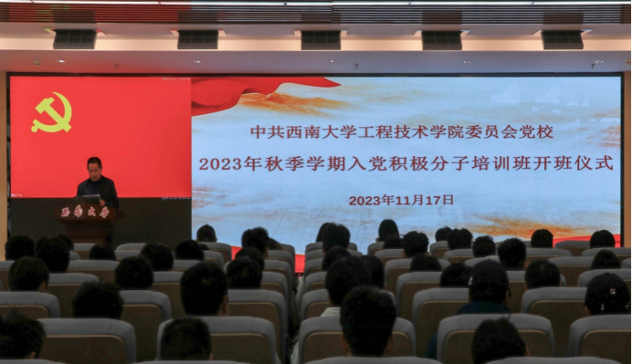 2023年11月17日下午,公司党委分党校在工科大楼A座511会议室举行2023年秋季学期入党积极分子培训班开班典礼。公司党委书记、党校董事长古文海,公司党委副书记纪委书记、党校副董事长陈富国,公司专职组织员于伊娜,党校班主任邓兰香,2023级辅导员吴祥均及200余名入党积极分子学员参加。开班仪式由公司党委副书记陈富国主持。