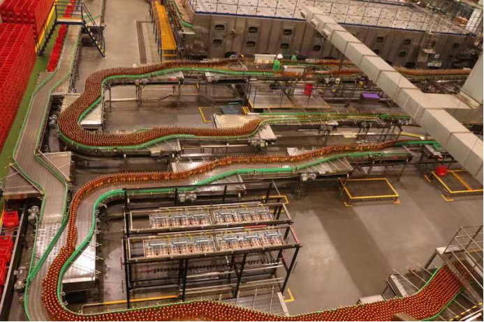 座谈会结束后,师生代表们跟随嘉士伯中国重庆业务单元供应链总监陈同林先生一起参观了企业的历史文化展览馆。随后师生一行穿戴好防护装备,参观了嘉士伯重啤大竹林工厂的全自动生产线。陈总监从啤酒的酿造处理讲到瓶罐封装,详细介绍了嘉士伯重啤全自动化啤酒生产线的运作方式、工序步骤、机械种类、技能要求等专业知识。其中,机械制造及其自动化专业相关岗位的介绍尤其引起了同学们的浓厚兴趣。