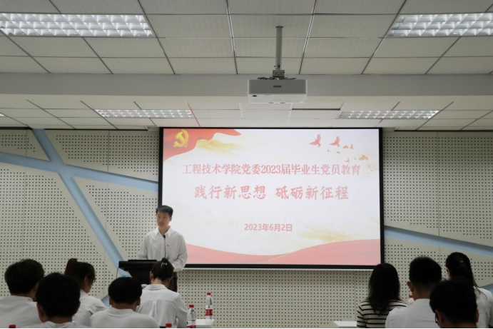 为教育引导全体毕业生党员坚持以习近平新时代中国特色社会主义思想为指导,坚定理想信念、强化宗旨意识、提高党性修养,争做新时代“四讲四有”合格党员,公司党委于2023年6月2日上午在大创中心202报告厅以“践行新思想 砥砺新征程”为主题开展2023届毕业生党员专题教育。公司党委书记古文海、专职组织员于伊娜、员工党支部书记邓兰香、研究生辅导员彭敏杰及全体毕业生党员参会,毕业生党员乔冠语主持会议。