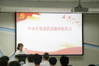土木与建环本科生党支部毕业生党员王香香以《青春践行二十大,踔厉奋发新青年》为主题进行党的二十大精神微宣讲,号召毕业生党员用自己的专业为国家建设发展做出贡献。温翀慰代表全体毕业生党员发言,对公司公司一直以来悉心的培养教育表示衷心的感谢,并表示在新的学习工作岗位上,将接过赓续红色基因的接力棒,以青春之我,创建青春之家庭、青春之国家、青春之民族。