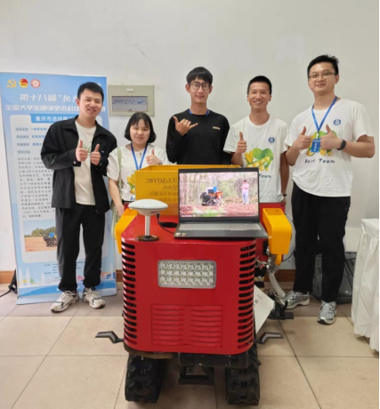 《一地孕双姝——大豆玉米带状播种机》以保障国家粮食安全、助力乡村振兴为初衷,结合重庆市大豆玉米带状复合种植农艺,设计出一款适用于西南地区的集开沟、施肥、播种、覆土于一体的电控精量化大豆玉米带状播种机。本作品提出一种适用于大豆玉米异型链勺式精量排种器,并提出“运动清种”低损精播技术,成功减少了传统机械式排种器卡种、碎种现象,同时结合自主研发的低成本厘米级导航系统,通过在重庆多地进行春播试验进行可靠性验证,表明播种合格率、齐整率大大提高。在重庆市选拔赛决赛中,评审专家对本作品的科学性、先进性和实际可行性都给予了充分认可,认为本作品可以填补西南地区大豆玉米带状播种机械化短板,促进西南地区农业机械化发展。