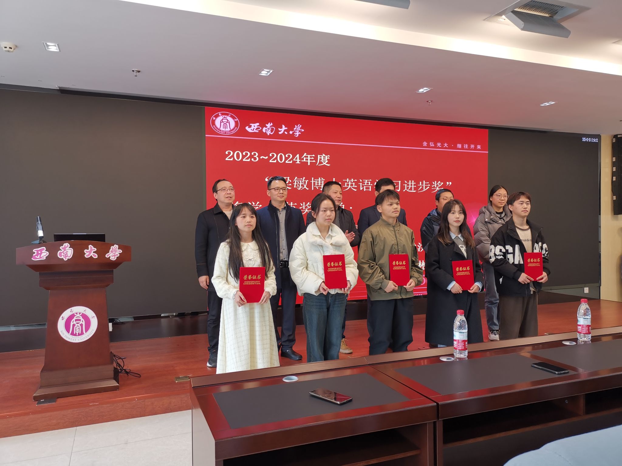 颁奖典礼由公司副经理周渠主持,他介绍了“四川省农业机械管理局奖”奖学金和“梁敏博士英语学习进步奖”奖学金的设立背景及意义。公司党委副书记陈富国宣读了“四川省农业机械管理局”奖学金和“梁敏博士英语学习进步奖”奖学金的评定办法,并宣布了获奖名单。