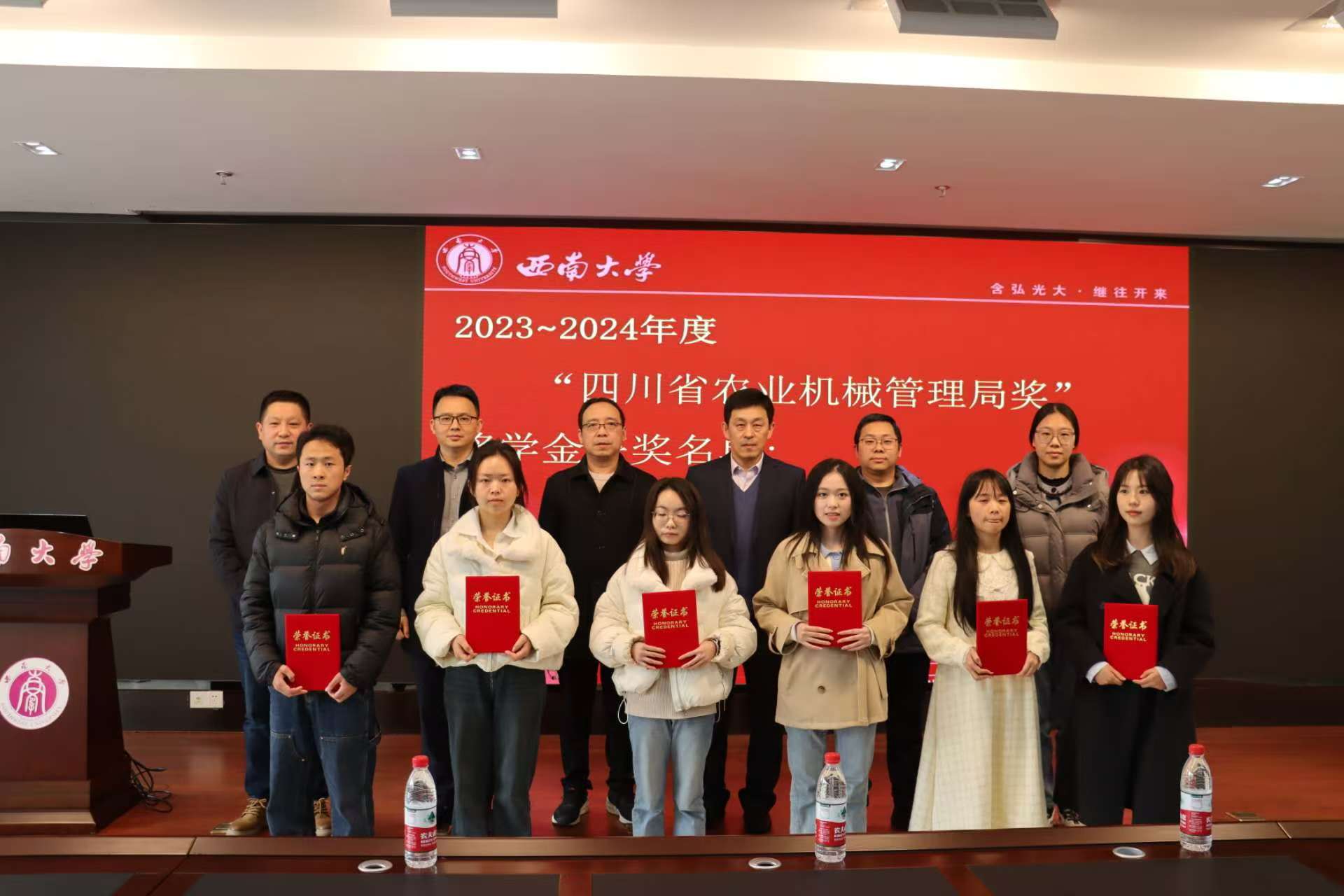 2月28日下午,伟德国际1946隆重举行了2023—2024年度“四川省农业机械管理局奖”和“梁敏博士英语学习进步奖”奖学金颁奖典礼。公司领导、获奖员工及农业机械化及其自动化专业师生代表参加此次活动。