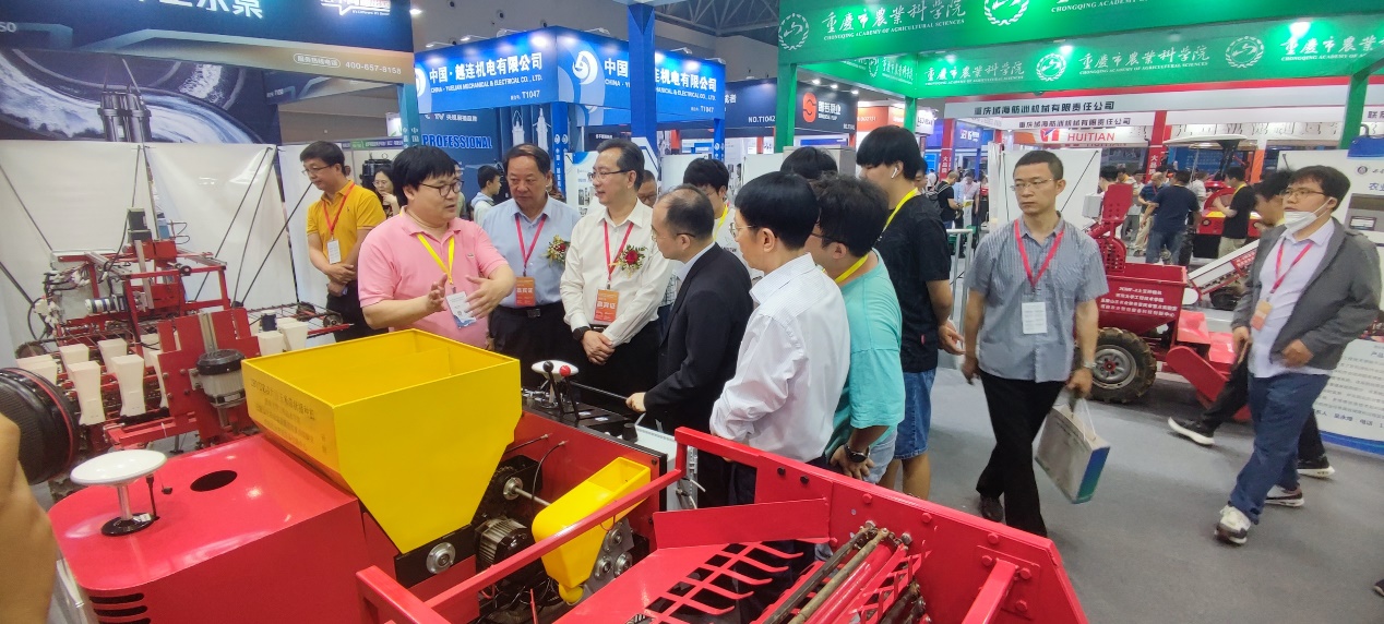 此次展览会来自重庆、四川、浙江、湖南等19个省区市的255家农机企业、科研机构参展,展出面积1.8万平方米,吸引了超200家企业、科研机构参展。展会上,公司通过实物、海报的形式展出种植、收获、农产品初加工、畜禽养殖等相关设备50余台/套,得到了重庆市农业农村委员会、重庆市经济和信息化委员会相关领导亲临展台指导与肯定。如为填补丘陵山区大豆玉米带状播种机械空缺所设计的集开沟、施肥、播种、覆土于一体的电控精量播种机,精度与效率高,得到了重庆广电、重庆新闻联播等媒体报道。