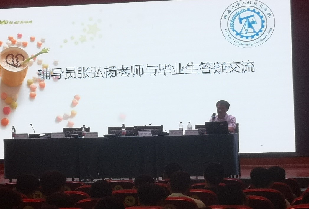 张弘扬老师与同学们进行现场互动,针对不同专业、不同情况的就业问题进行了深入、细致地解答,从心理上为毕业生加油打气,从实际行动上为毕业生就业工作保驾护航。