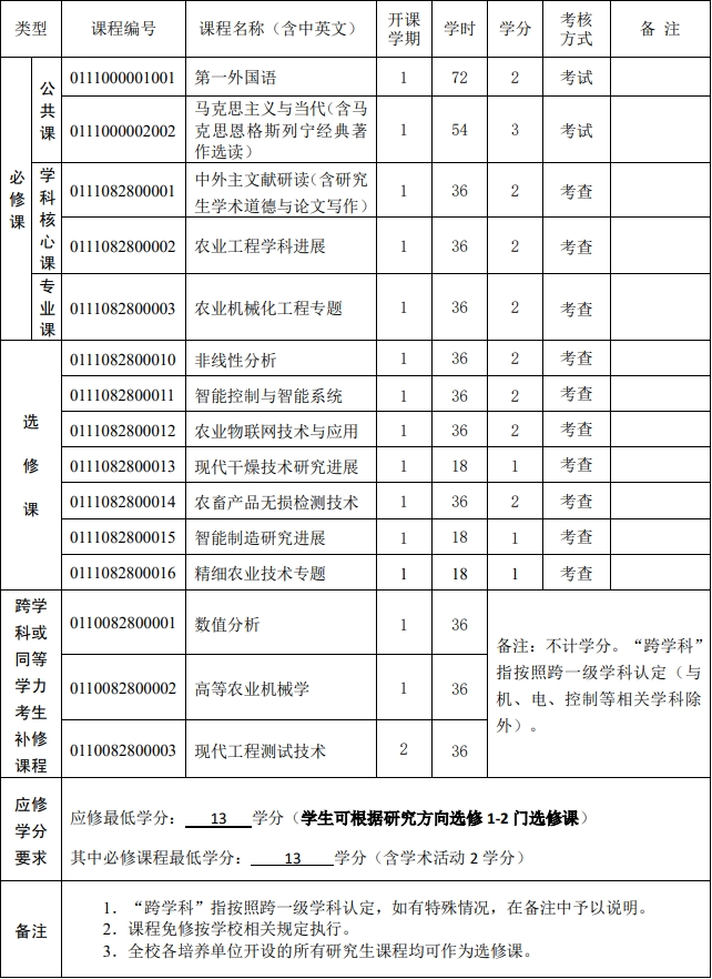 二级学科专业名称 农业机械化工程